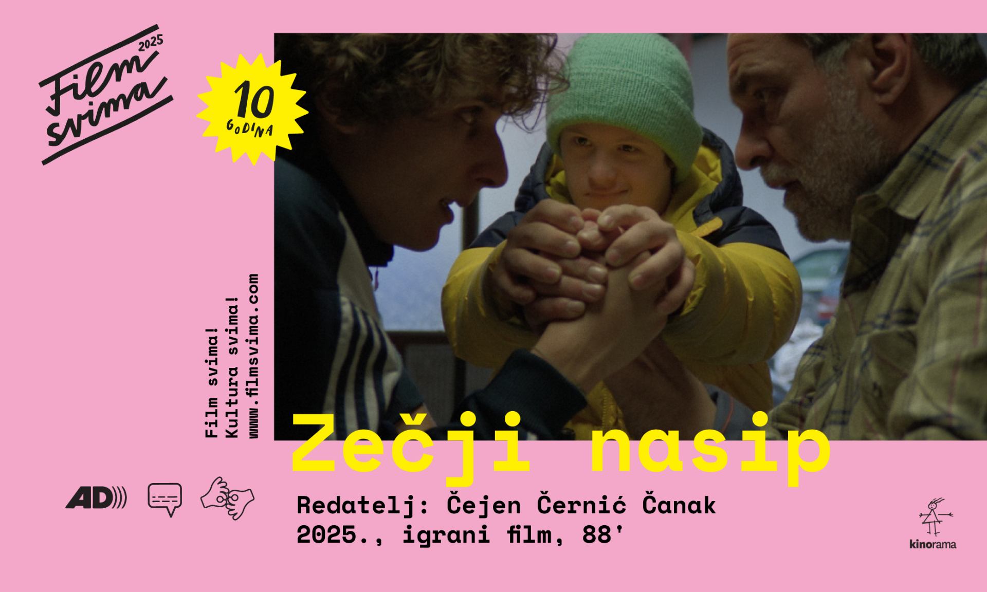 Jedan ovogodiÅ”njih filmskih dragulja koje predstavljamo u sklopu MeÄunarodnog tjedna gluhih i nagluhih osoba je ZeÄji nasip, drugi inkluzivirani film redateljice Äejen ÄerniÄ Äanak, koji gledamo u sklopu Film svima 2025 u srijedu, 24.9.2025. u 18:00 uĀ Art-kinu. Ulaz je slobodan uz prethodnu rezervaciju na maja@filmsvima.com.