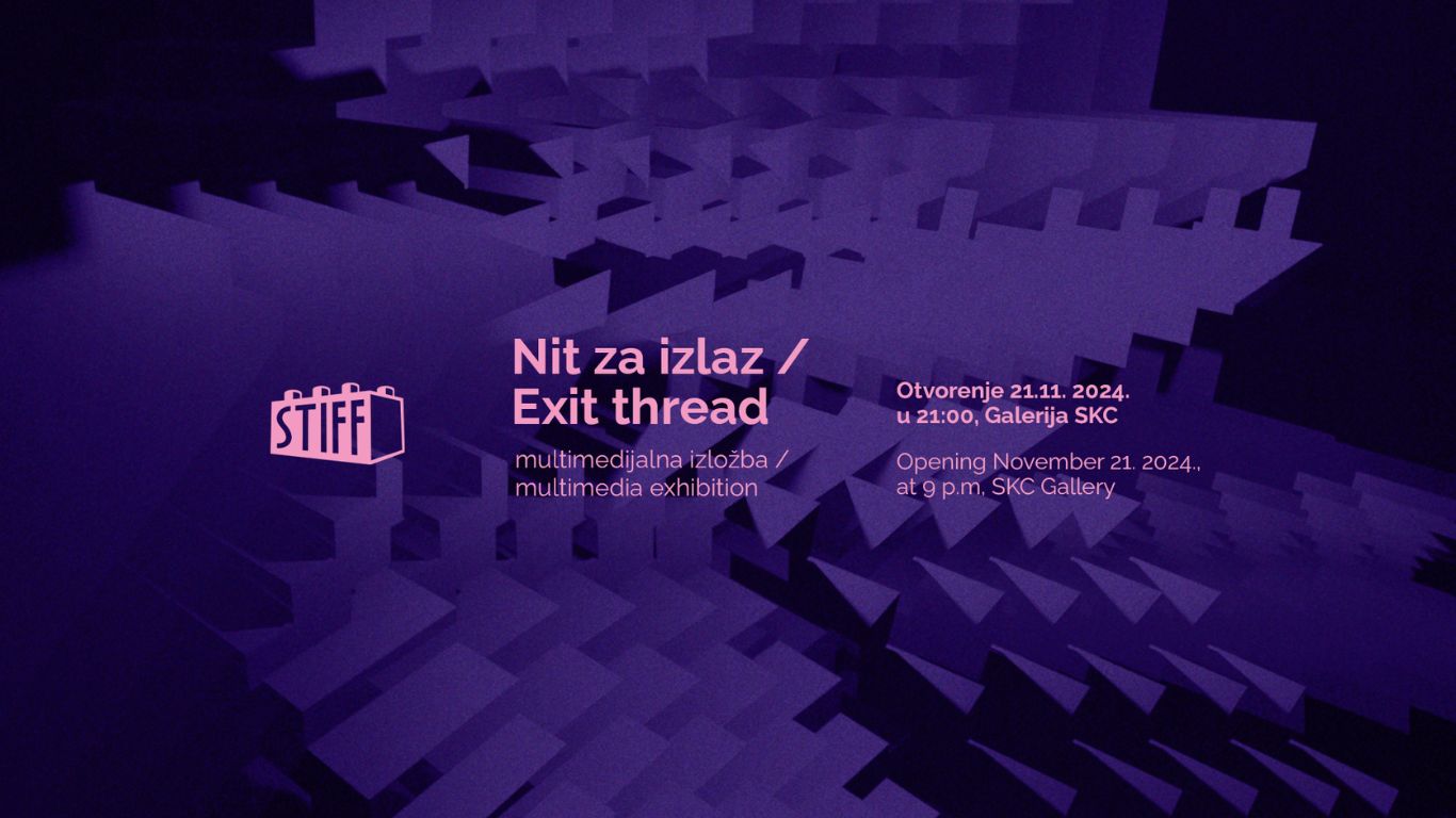 Ovogodišnje, 11. izdanje Studentskog internacionalnog filmskog festivala — STIFF istražuje temu Bijega na kojoj se temelji i izložbeni dio popratnog programa u Galeriji SKC pod nazivom „Nit za izlaz“. Izložba obuhvaća radove devet umjetnica i umjetnika koji u različitim medijima, napose digitalnom, temu Bijega problematiziraju kroz pitanja identiteta i osobne slobode.